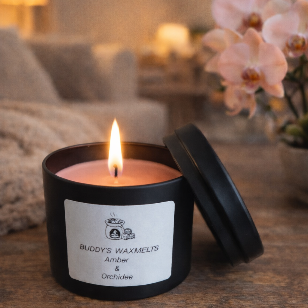 Laat je huis heerlijk ruiken met onze geurende kaars in de geur Amber & Orchidee. Een zachte, frisse en warme geurcombinatie die je direct omarmt, Perfect voor een ontspannend moment voor jezelf of als stijlvol geschenk.